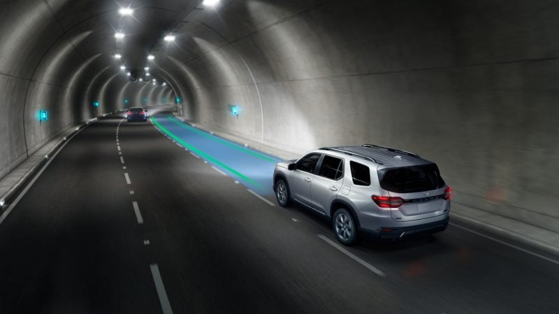 The 2026 Pilot comes equipped with Honda Sensing®, a suite of driver-assist technologies that includes Collision Mitigation Braking, Lane Keeping Assist, Adaptive Cruise Control, and Road Departure Mitigation.